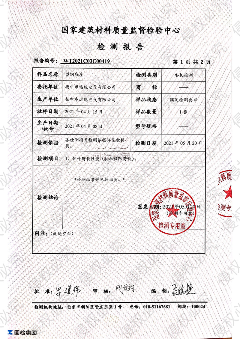 型钢底座检测报告
